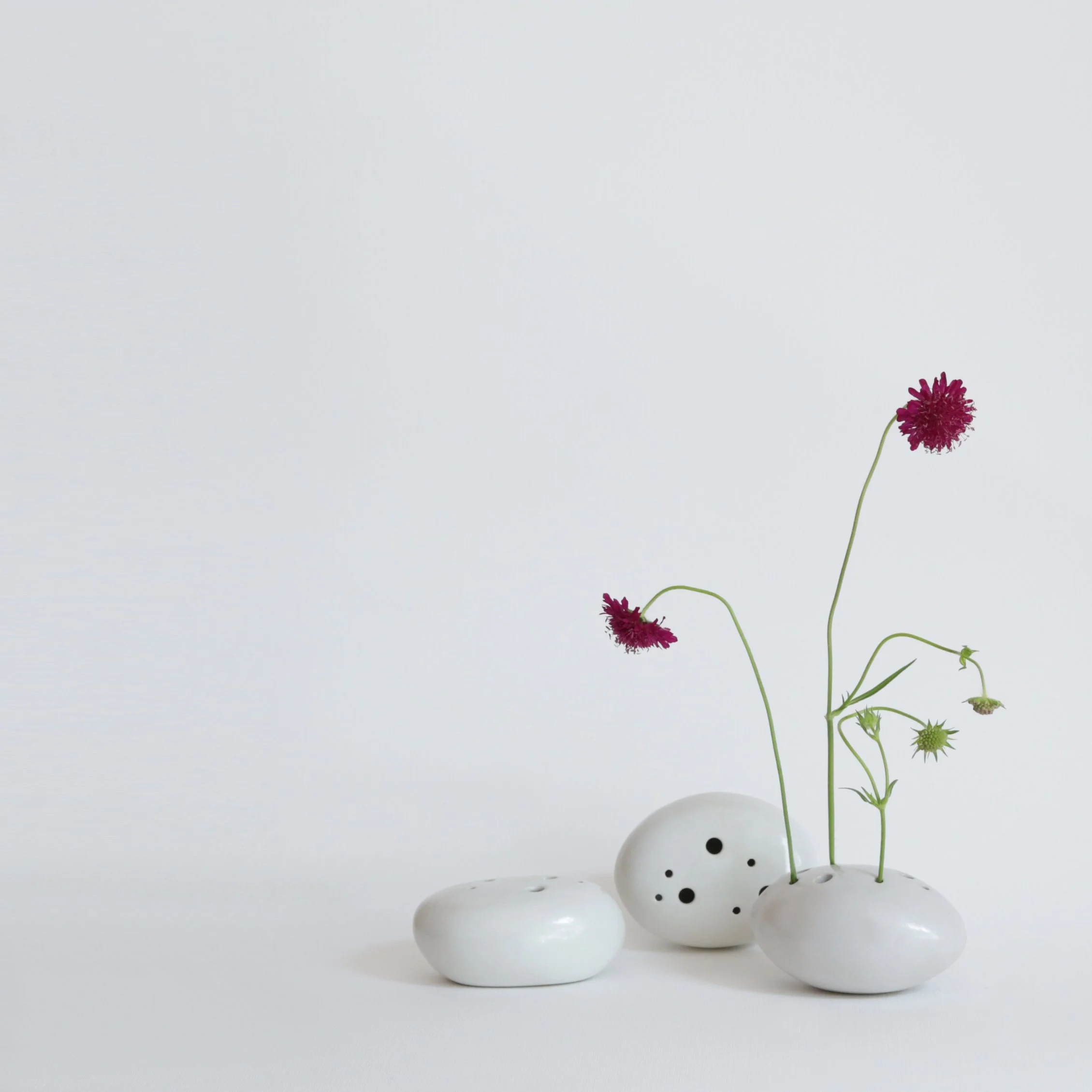 Gute Freunde haben in Giumaglio im Tessiner Maggiatal ein wunderschönes Haus, inmitten von Reben und nicht weit von einer idyllischen Badestelle, dem «Pozzo da Fröd», entfernt. An einem sonnigen Herbsttag, als ich durch das Flussbett kletterte und all die organisch geformten Steine sah, entstand die Idee für die Ikebana Blumenvasen: Das Design von der Natur inspiriert, aus feinstem Ton gefertigt und zu Vasen geformt. Also sammelte ich die schönsten Exemplare ein, nahm sie nach Luzern in mein Studio und daraus entstanden sind die Ikebana Blumenvasen meiner ersten studio nume Kollektion.